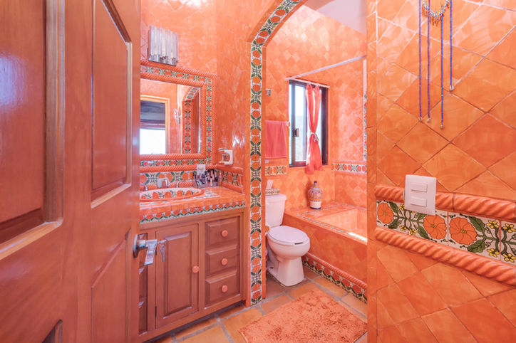 · Living Spaces: Open concept living and dining areas with a vaulted ceiling bathed in natural light from the wall of windows that opens to a huge wraparound covered patio. Custom tiles from Dolores Hidalgo are used in the bathrooms and much of the furniture is custom made by local artisans.