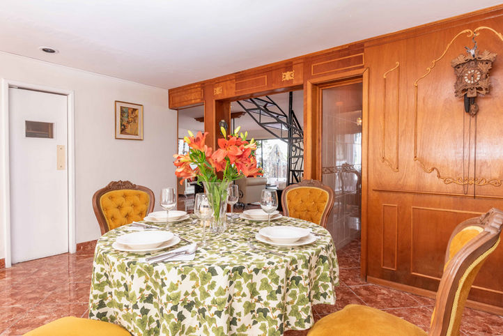 la sierra, la presa y el centro de la ciudad, destacando las famosas torres neogóticas de su parroquia. Las otras dos recámaras comparten un baño, y finalmente, en la misma planta baja, se encuentra un estudio de 12 m² con muebles empotrados. En el nivel inferior se encuentran el comedor, la cocina equipada con madera, el área de lavandería y las habitaciones que dan a la terraza mirador con la mejor vista de la ciudad. Debajo de esta se encuentran las instalaciones para el personal de servicio, una terraza cubierta y la piscina. Finalmente, en el nivel inferior se encuentran los tres estacionamientos cubiertos ya mencionados. El edificio tiene más de 40 años de antigüedad. Debido a su estado, es natural que se requieran mejoras significativas para modernizarlo y remodelarlo, lo que requiere una inversión. Por esta razón, los propietarios han decidido reducir el precio y están muy motivados para negociar.